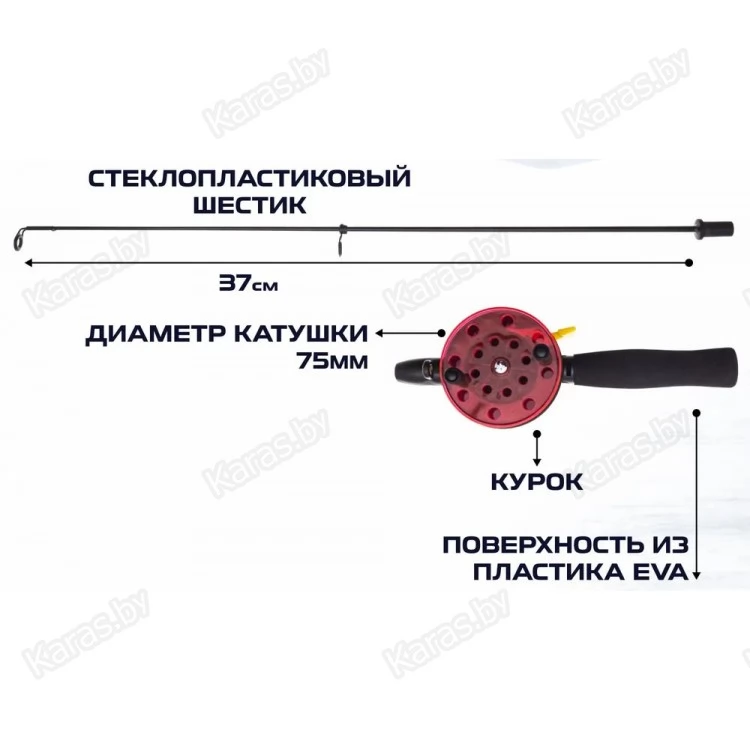Благодаря продуманной геометрии, рукоять удочки удобно лежит в ладони. Рукоять покрыта мягким, малоскользящим EVA, сохраняющим тепло рук. Открытая шпуля позволяет визуально контролировать качество намотки лески, что необходимо для таких удилищ в зимнее время. Удочка имеют удобное курковое включение - отключение стопора, что обеспечит уверенную подсечку - шпуля катушки всегда будет надежно зафиксирована. Укомплектована стеклопластиковым шестиком средней жесткости с тюльпаном, на рукоятке установлено проводочное кольцо из нержавеющей стали. При транспортировке разбирается на две секции.