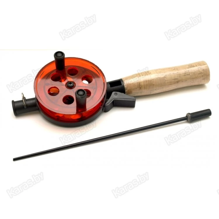 Зимняя удочка AKARA 1808504 с пробковой рукояткой (21\20 см, диаметр катушки 75 мм, красная)