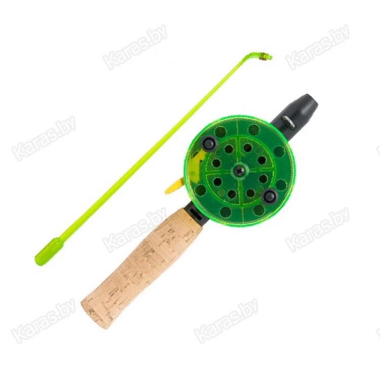 Зимняя удочка Akara JL1001 с пробковой ручкой IRT-650 (39 см, диаметр катушки 55, зелёная)