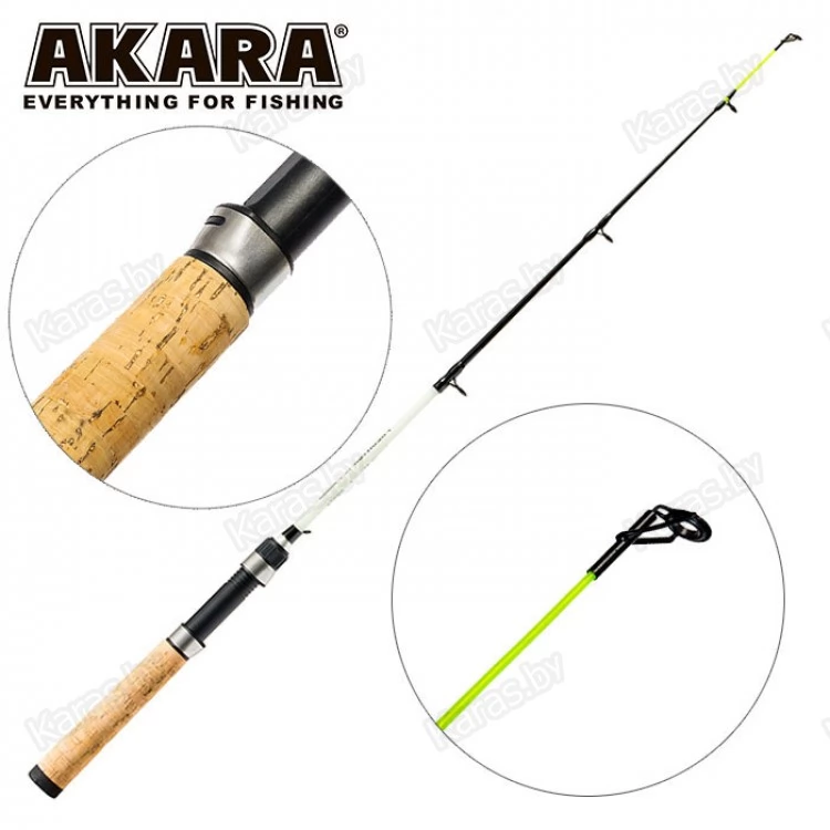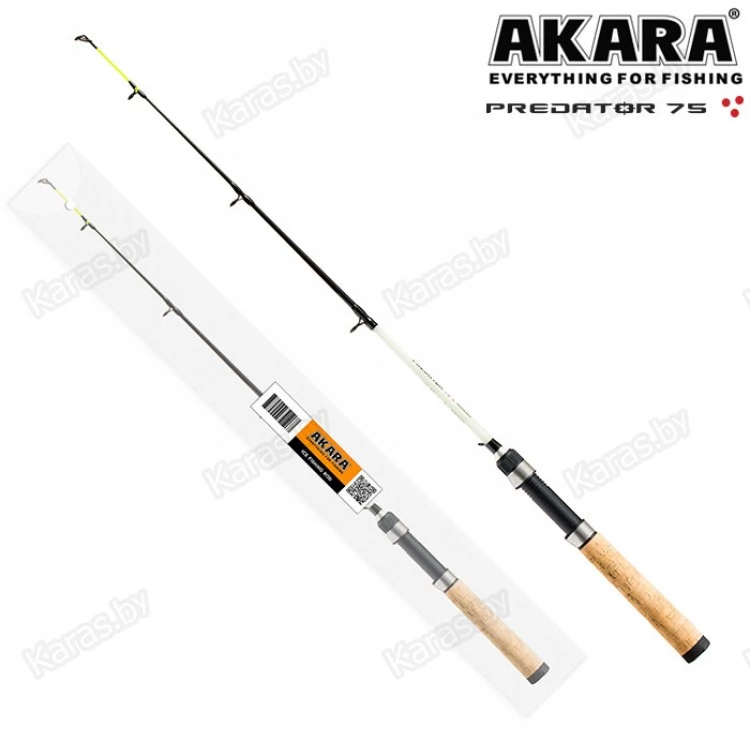 Удочка зимняя Akara Predator – удочка для ловли крупными приманками со льда. Мощный стеклопластиковый хлыст комплектуется пропускными кольцами с керамическими вставками увеличенного диаметра. Пробковая рукоять оснащается классическим и надежным катушкодержателем под любой тип катушек. Удилище оснащено удобным «хук – кипером» для крепления крючков приманки при длительных переходах или транспортировке.