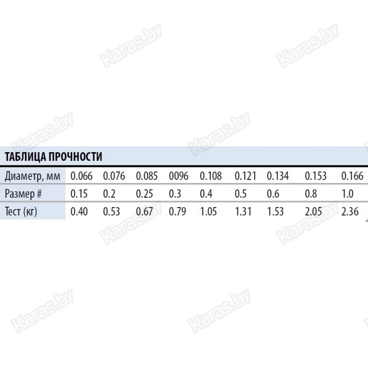 Диаметр, мм: 0,066, 0,076, 0,085, 0,096, 0,108, 0,121, 0,134, 0,153, 0,166;